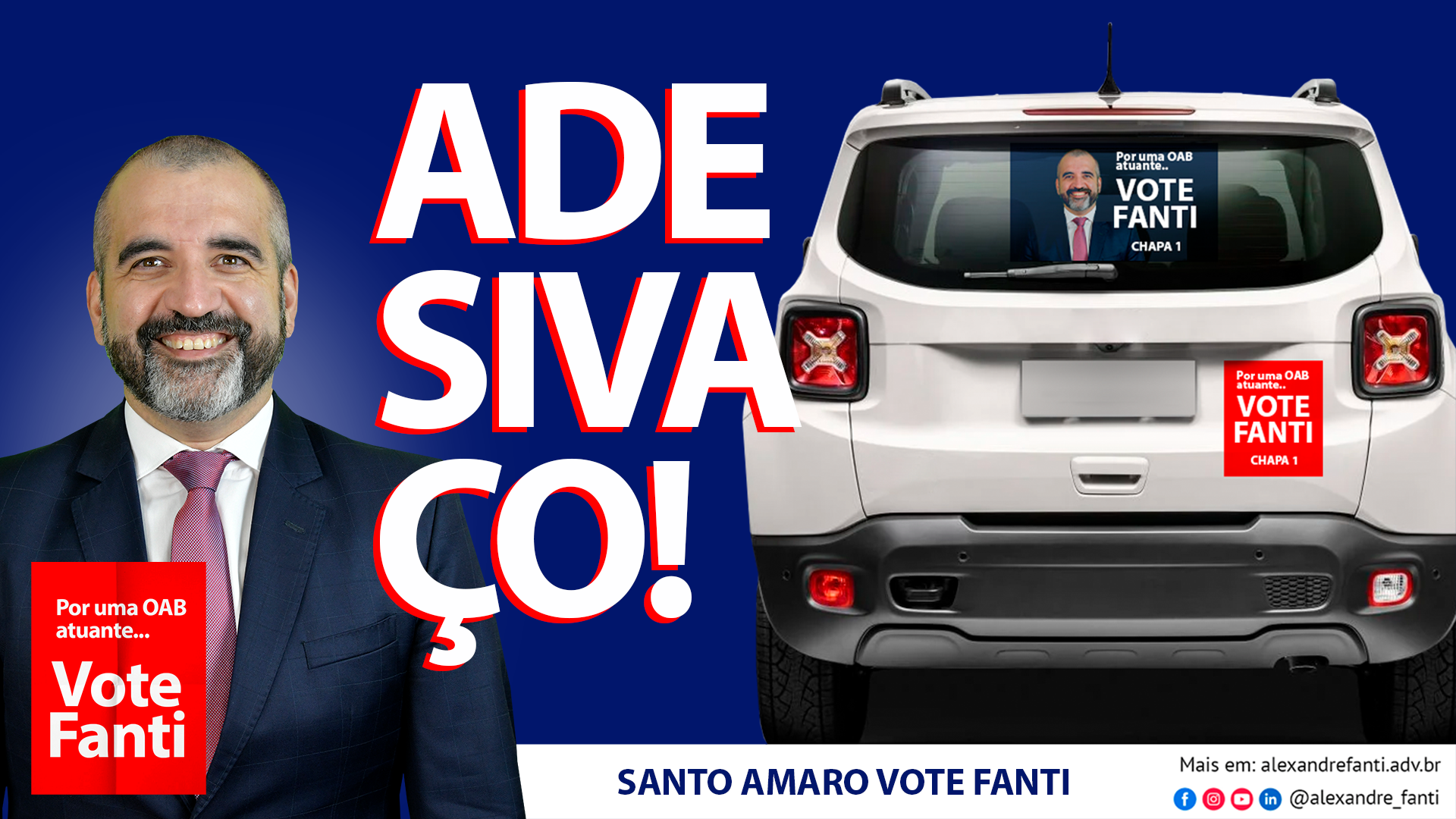 Será uma oportunidade incrível de espalharmos pelas ruas de São Paulo os adesivos da Chapa Alexandre Fanti nos vidros dos Carros, fortalecendo ainda mais nossa candidatura.
